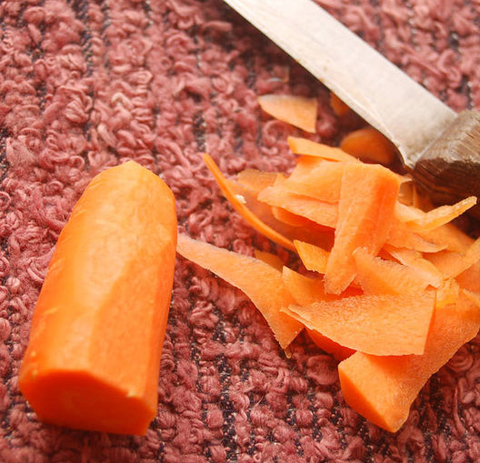 Find a piece of carrot about the size and shape of your thumb. You may have to carve it a little bit with a knife to get it perfect. (But only if you are allowed to use knives!!! If not, get an adult to help you with this part or you might REALLY cut your thumb!)